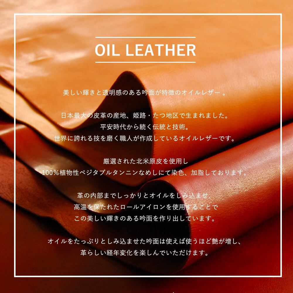 透明感のある美しい輝きを持つオイルレザーを使用しております。