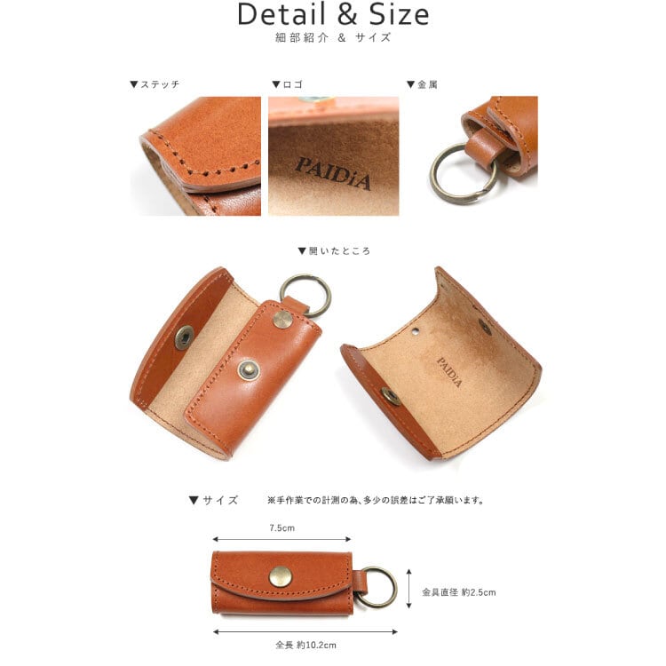 本革 ヌメ革 コンパクト キーケース RED 赤 レッド メンズ レディース クレインワックス 日本製 パイディア Paidia 牛革 レザー 鍵 収納 キー 束ねる まとめる 小さい プチプラ P015