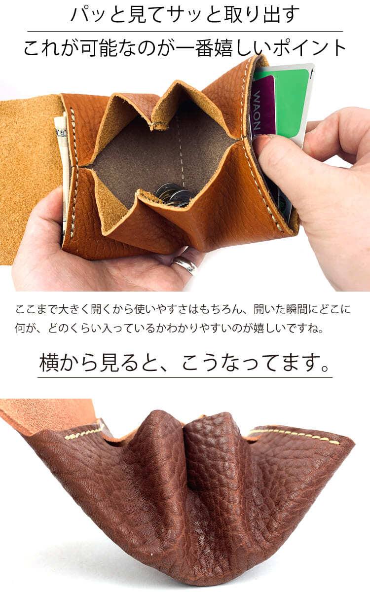 ポケット自体が大きく開くので、奥にあるコインも見やすく出し入れしやすいです。