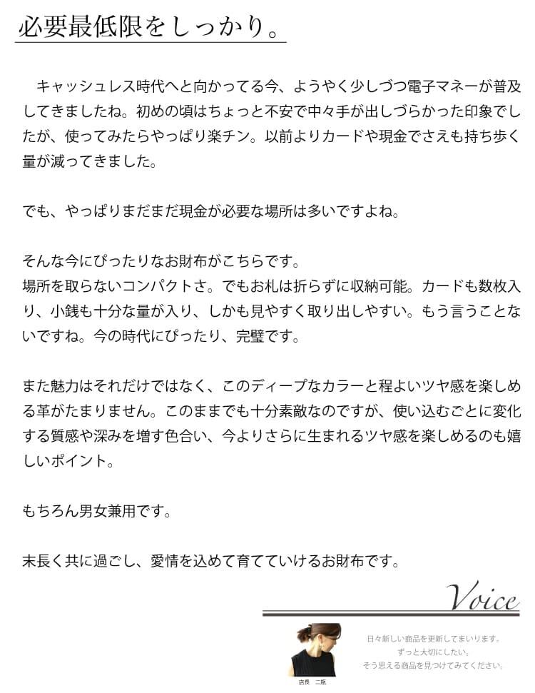 約カード1枚分のサイズの小銭も見やすく取り出しやすい、牛革・日本製で、お札を折ることなく収納可能で、カードもしっかり入る、そんな、お財布です。
