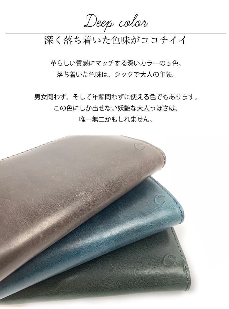 ディープなカラーの中に透明感を感じるイタリア産の牛革。