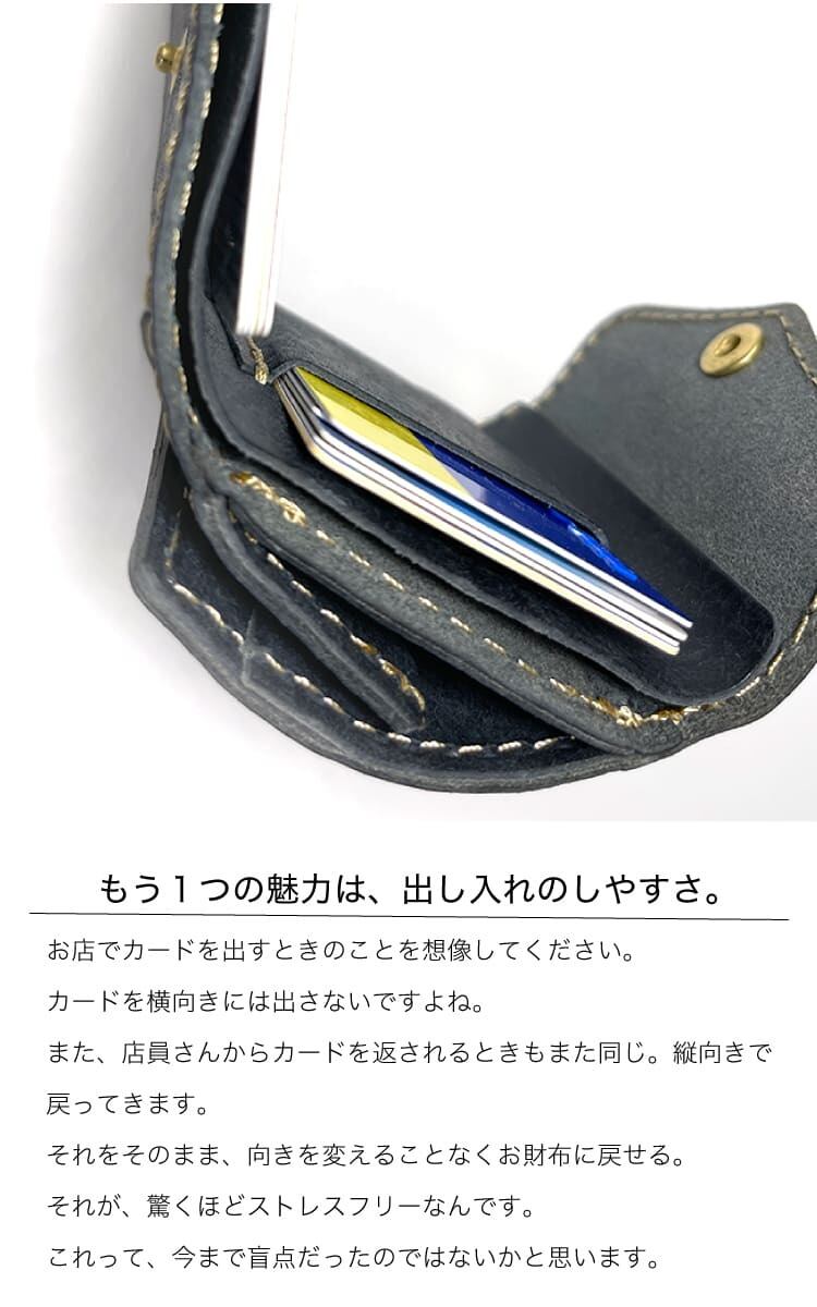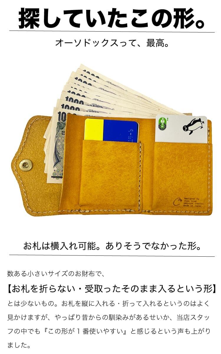 当店取り扱いの小さい財布の中でもこの形は唯一無二。
