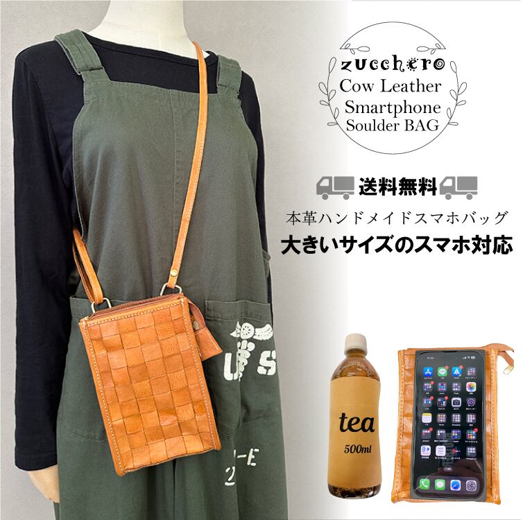 カウレザー スマホ ポシェット 大 スマホポーチ ショルダーバッグ ズッケロフィラート zucchero filato メッシュ BROWN ブラウン 肩掛け 斜めがけ 本革 牛革 レザー 49439