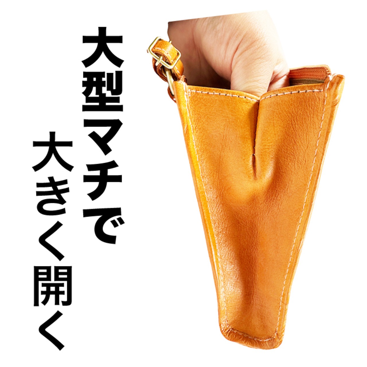 ポケットの秘密。しっかりとした革で大きくマチを作るので使いやすさ抜群。