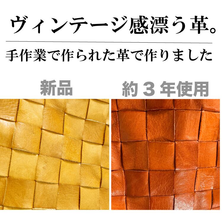 時間と使用頻度と共にくったりと柔らかくなり革の色が焼け、表情豊かになる牛革ならではの、経年変化も楽しみの一つです。