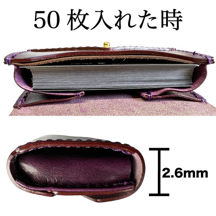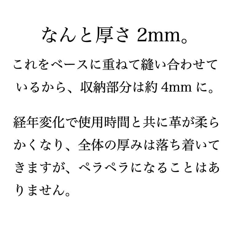 収納する枚数が違っても同じ厚さのポイントは約2mmの厚さの革を使用していること。
