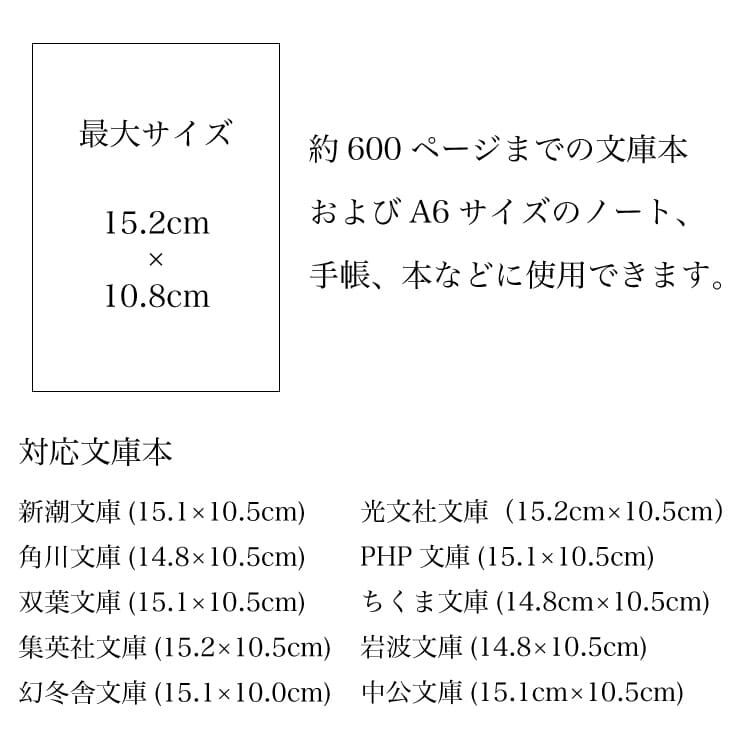 文庫本約600ページまでの文庫本およびA6サイズのノート、