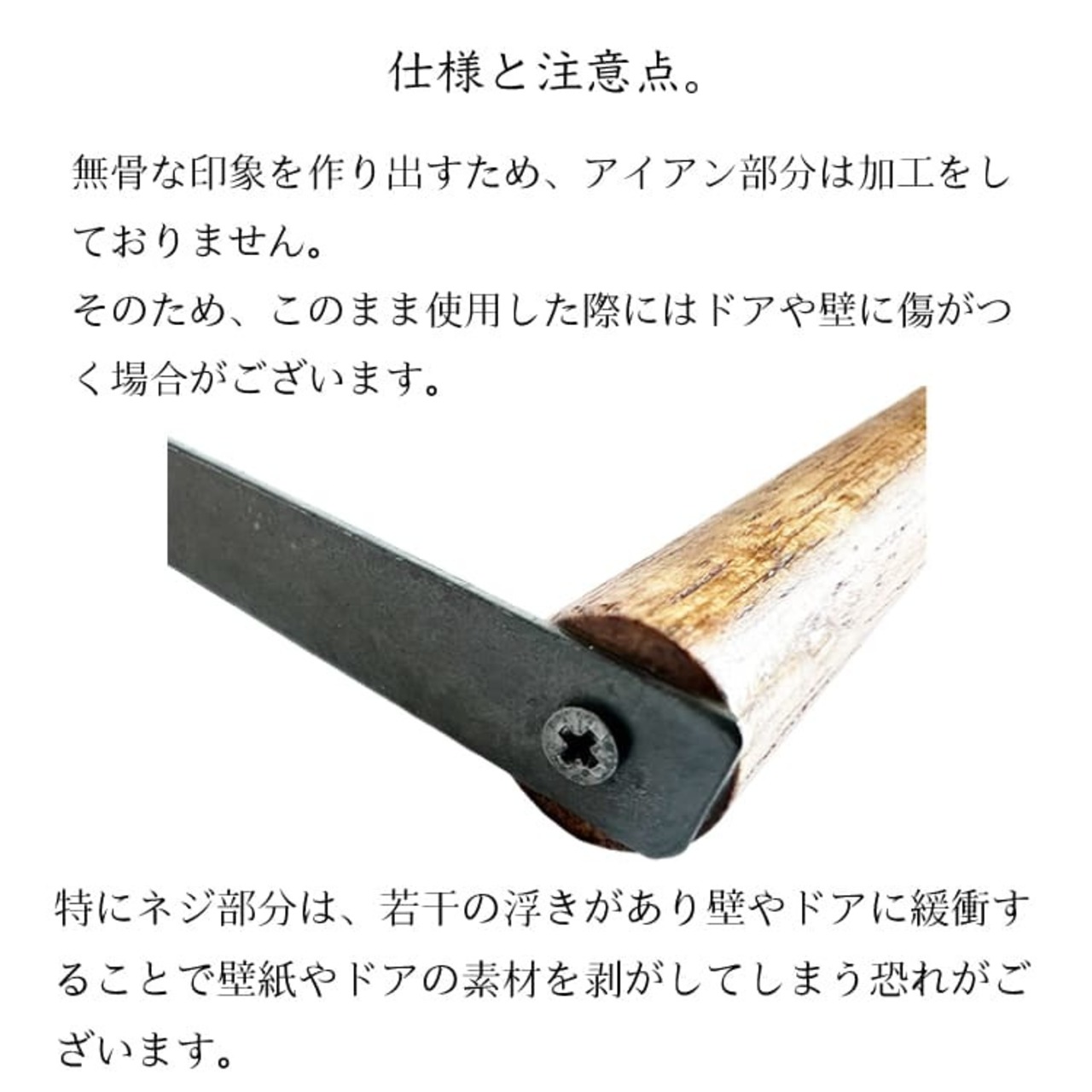 特にネジ部分は、若干の浮きがあり壁やドアに緩衝することで壁紙やドアの素材を剥がしてしまう恐れがございます。